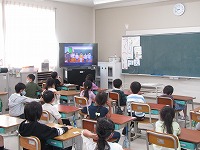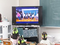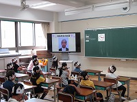 える動画を作成しました。それぞれの教室で動画を見ている1年生の顔は、どの児