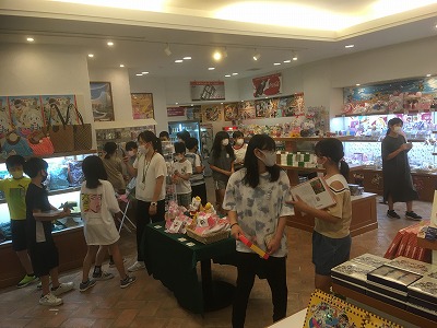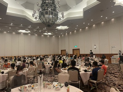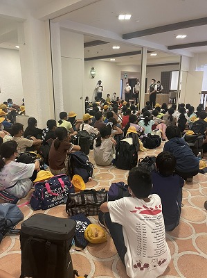 1日目のホテルでの様子です。入館式を行い、各自、自分たちの部屋にも入り、入浴を済ませました。大広間での夕食は静かにいただきましたが、その後のクラスごとの買い物時間には、家族を思い浮かべながらおみやげを選んでいる様子でした。
