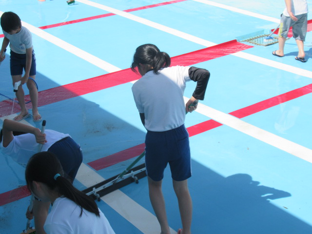 大プールも小プールも見る見るうちにピッカピカになりました。6月の中旬から始まるプールでの体育学習が楽しみです。