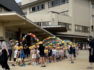 6月1日に新学期が始まり約50日が過ぎました。1年生も学校生活に慣れ、元気に学校生活を送っています。そんな1年生を‟三山木っ子”の仲間として全校児童が迎えるために、6年生が「1年生を迎える会」の計画を進めてくれました。長雨のため延期につぐ延期で本日(7/20)ようやく開催することができました。短い時間ではありましたが、心のこもった迎える会でした。