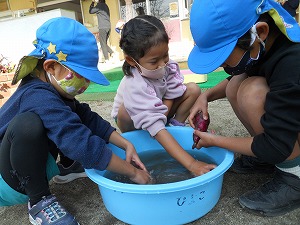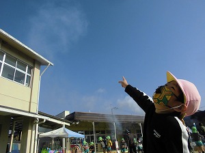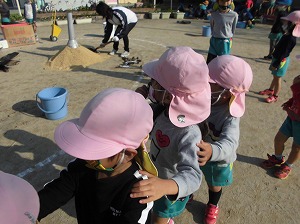 朝からいつもと違う雰囲気に興味津々の子ども達。