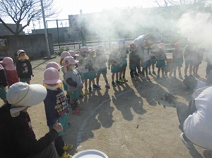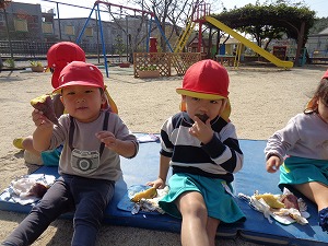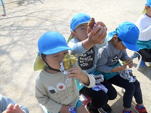 「やきいもできたよ~!」の声に次から次へと子ども達がやってきました。
