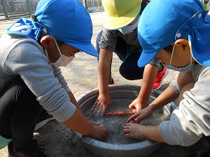 自分たちが掘ったお芋をていねいに洗っていきます。