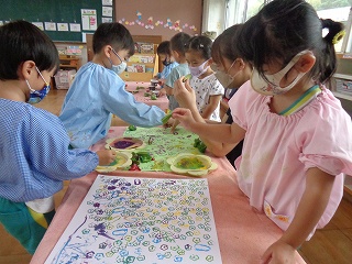 たくさんペタペタとスタンプを押しながら「とってもきれい!」と喜んでいました。