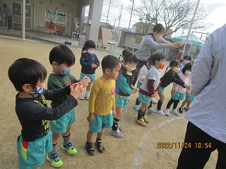 うさぎ・ひよこ組さん、大きい組さんのまねっこをしてがんばりましたよ!