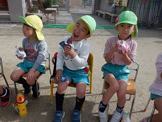 いつもと違う園庭の雰囲気に、朝からワクワクしている様子の子どもたちです。