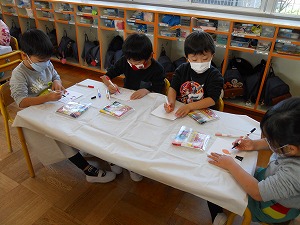DVDで見たお友達に思いを馳せながら、ていねいに絵を描いている子ども達です。