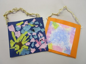 三山木幼稚園で楽しんでいた染め紙で作ったおみやげ袋に手紙を入れて、