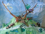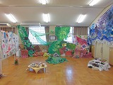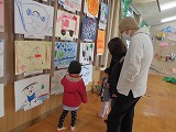 例年は、市立幼稚園8園の作品を コミュニティホールに展示しているのですが、 今年度は新型コロナウイルス感染症感染防止のため、 各園での開催になりました。 三山木幼稚園では、2月6日(土)・7日(日)に 開催しました。  お家の人とわくわくしながらアーチをくぐります。 階段を上がると、いつもと違うホールの雰囲気に 思わず「うわ~っ」と声があがっていました。 『幼児一人一人の心を大切に』のテーマのもと、 子どもたちが様々な素材に触れ、心を動かし、 いろいろな表現を楽しんだ作品が たくさん集まりました。  3・4歳児の子どもたちが、日々楽しんでいた たくさんの遊びがつまっています。 自然物も廃材も子どもたちの手にかかれば、 おいしそうなごちそうになったり、 ねずみの家族になったり… 「こんなに楽しい遊びをしているんですね」 とお家の方も笑顔になられていました。  5歳児の子どもたちの“楽しい”が詰まった夢の国! 自分たちが作った虫や人を動かして ごっこ遊びを楽しんできました。 細かいところまで工夫しているところや 子どもならではの発想に、 お家の方も思わず「すごいなぁ」 うれしそうな子どもたちでしたね。  絵を見ながらたくさんお話をする子、 お家の人にほめてもらいとてもうれしそうな子、 ちょっぴり恥ずかしそうにする子… その様子を見ていると、ほっこり温かい気持ちに なりました。 きっと、子どもたちの自信となったことでしょう。 保護者の方々から、 「たくさんの楽しい経験をさせていただいて いるのだと改めて感じました。ありがたいです。」 「我が子ながら、こんなにできるんだと驚きました。 意外な一面がわかり、うれしかったです。」 など、たくさんのうれしいお言葉をいただきました。 絵画展を通して、お子さんの成長を感じて いただけたこと、日々の園での楽しんでいる様子を 感じていただけたこと、そして何よりも 子どもたちのうれしそうな笑顔が印象的で、 私たちもうれしかったです。 今後も、子どもたちの心動く体験や 様々な表現活動を楽しんでいきたいと思います。 |
