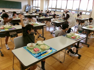 今日はお隣の三山木小学校で給食体験をさせてもらいました!
