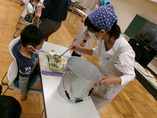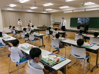 自分たちで配膳をして、量も調節してもらった後は校長先生からのお話がありました。