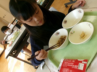 「肉じゃがやって~」「はりはり漬けって何やろ?」と給食体験が待ちきれない様子です。