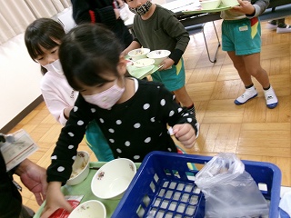 三山木小学校に給食体験にいってきたよ!朝からドキドキワクワクの5歳児きりん組の子ども達!