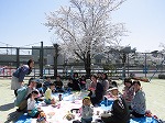 桜が満開となりました三山木幼稚園の園庭で、預かり保育の子どもたちとランチをしました。