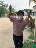 ようやく収穫することができました!  美味しそうな大きい玉ねぎ、 ちょっと小ぶりな可愛い玉ねぎ・・・ いろいろな形の玉ねぎがありました。  収穫した玉ねぎは、麻ひもできゅっと結んで、 年少さんの保育室の前に干しています。 幼稚園が始まったら、みんなで食べたいなぁ・・・ と楽しみにしています♪ 幼稚園が始まったら、 紫色で、甘くて美味しい 〇〇〇〇〇を 植えようと計画しています! 何かわかるかな? (『やくそくひょう』にもかくれているよ。) お楽しみに! |