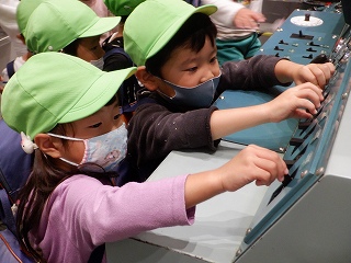 いろいろなレバーを実際に触って、とてもうれしそう。