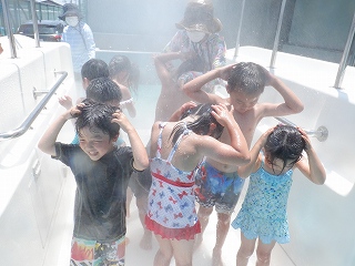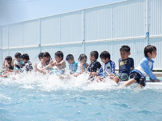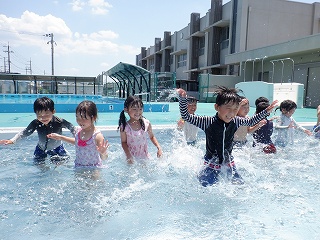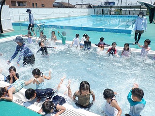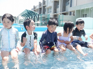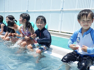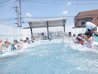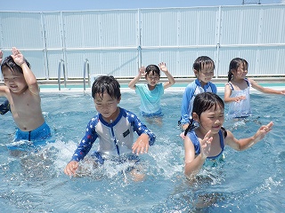 広いプールで開放的にいっぱい遊べて、大満足の子どもたちでした。