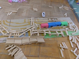 カプラやソフト積木を組み合わせて、いろいろな線路ができています。