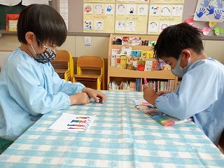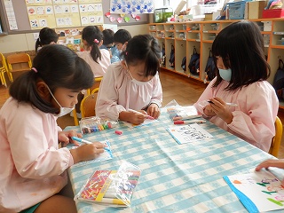 その後は、他園のお友達に向けて、絵を描きました。