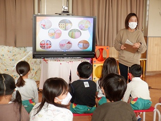 それぞれの園紹介では、いろいろなクイズに答えたり、「これやってみたい」と遊びに興味をもったり…