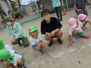 秋空が広がる中、小学校の先生3人が来てくれて、子どもたちと一緒にいっぱい遊んでくれました。