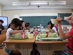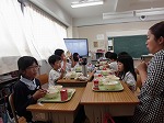 今年も5年生との交流です。優しく導かれ、給食をいただきました
