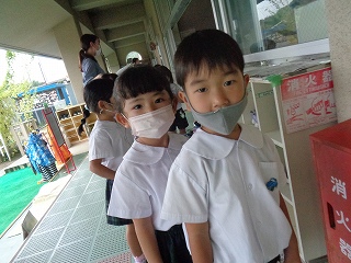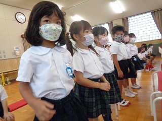 ワクワクしながら順番に並ぶ4歳児りす組さん!