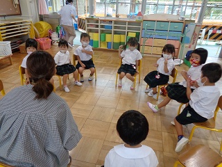 3歳児うさぎ・ひよこ組さんも名前を呼んでもらって、かわいく返事をしていましたよ!