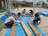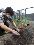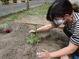 きりん組さんの畑をリニューアルしました。 長い板や杭にペンキを塗って、  トンカントンカン! しっかりと丈夫に組み立てていくと…  立派な畑ができあがりました! さぁ、この畑にも夏野菜を植えていきましょう。  ふかふかの土のお布団をかぶせて、 たっぷりお水をあげました。 いろいろな種類の野菜たちが並んで、 かわいい畑になりましたよ。 では、またまた 『野菜クイズ』です。 少し難しくなるよ。 お家の人と一緒に考えてみよう! ⑤  緑色で、ポコポコした形をしているよ。 つるつるしているよ。 (葉っぱも同じ、つるつるしているね) ⑥  黄色くて小さいつぶつぶが いっぱいついているよ。 緑の皮に包まれていて、おひげもいっぱい。 ⑦  丸くて、緑と黒のしましま模様があるよ。 切ると、中は赤色、黒い種もあるね。 (葉っぱの形がおもしろいね) ⑧  これは夏野菜ではなく果物! 丸くて、緑色で、 迷路みたいな模様がついているよ。 さぁ、わかったかな? 4つとも、『やくそくひょう』にもかくれているよ。 見つけられたかな? またクイズの番号を書いておいてね。 「〇番はこれ!〇〇〇だよ」と、 『やくそくひょう』を見ながら みんなでお話しようね。 それまで、先生たちでお世話をがんばります。 みんなが見る頃には、もう少し大きくなって、 葉っぱが増えたり、かわいいお花が咲いたり しているかも…。 楽しみにしていてね。 |