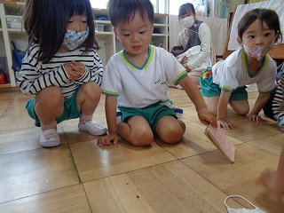 でも、わにさんの先生にこちょこちょをしてほしくて、鈴を鳴らしてはキャ~ッと喜ぶ子どもたちがかわいかったです。