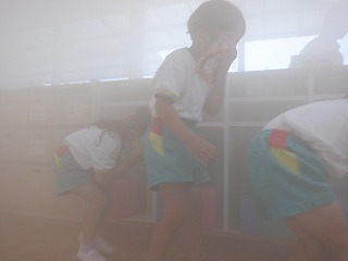 立ったままの目線では、いっぱいの煙で視界が見えないことに気付いた子どもたちでした。