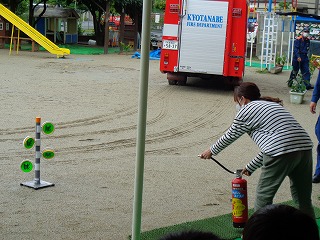 先生たちの消火体験も見ました。