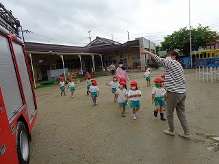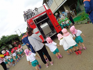 消防車が見えると朝から大喜びの子どもたち!