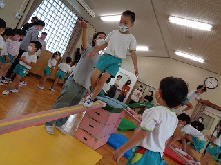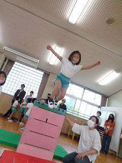 さっきよりも遠くに!自分で目標をもってジャンプしています。