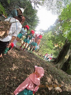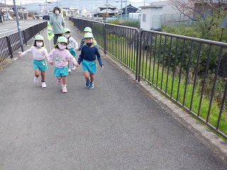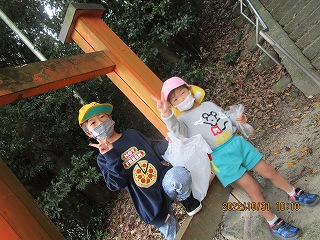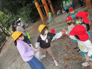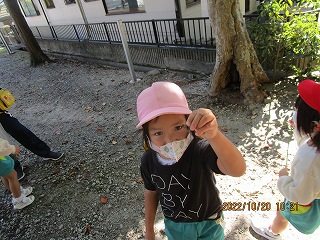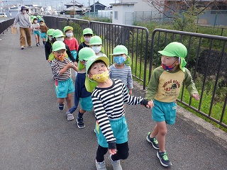 秋空の広がる中、全園児揃って、散歩に出かけました。