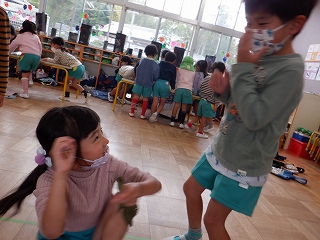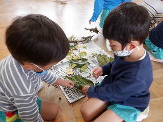 いろいろな形の葉っぱを比べたり、触ったりして、秋の自然を楽しんだ子どもたちでした♪