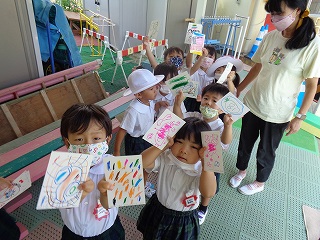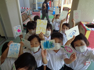 嬉しそうに自分たちで描いた絵を見せてくれます。