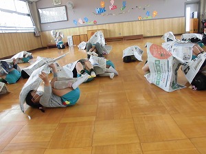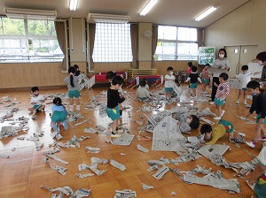 新聞紙遊びでは…