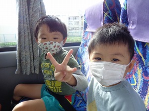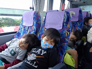帰りのバスでは、うとうと…夢の中で動物さんと遊んでいるのかな⁈