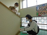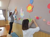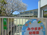 幼稚園の八重桜は満開でみんなのことを待っています。