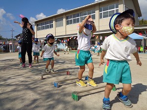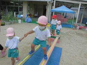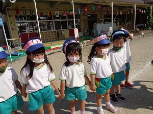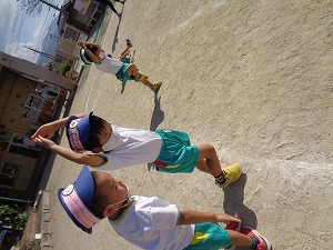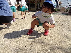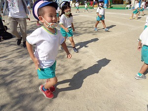 みんなで一緒に歩いたり、「よーいどん!」の合図で走ったり、