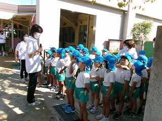 友達との間隔を開けて歩き、自分の場所を確認しながら列に入っていく姿は、さずが年長さんだなと感じました。