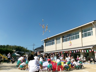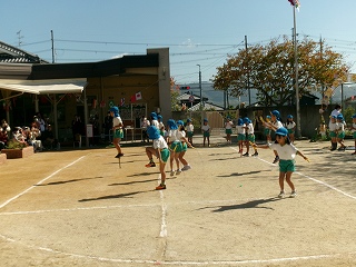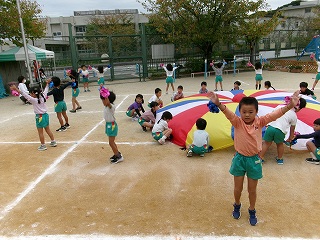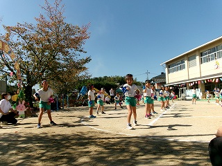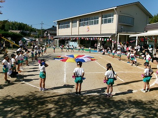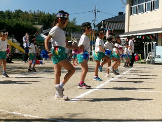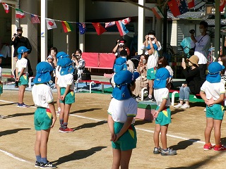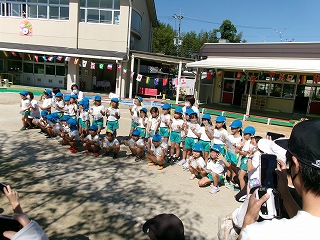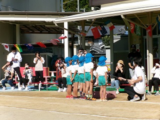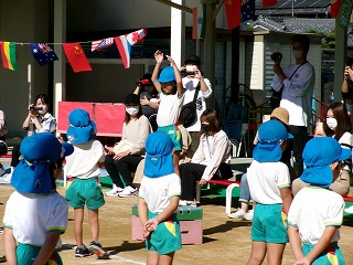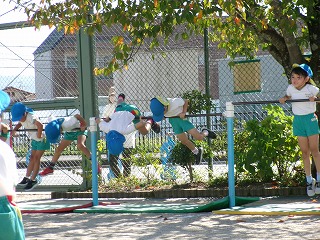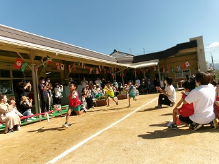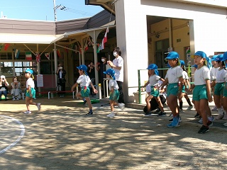 子どもたちのことを応援しているかのように太陽が照りつける中、5歳児きりん組の運動参観がありました。