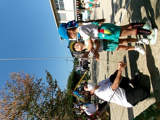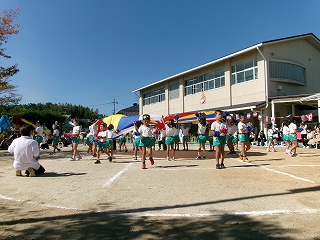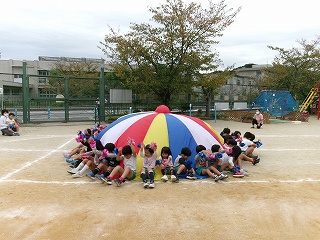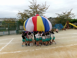 まわりの子の踊りがよく見えるように、中のバルーンは座っておこうと考えたのは子どもたちです。