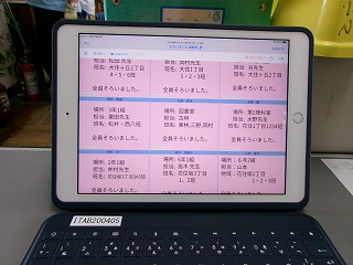 タブレットを活用し、地域別の教室から、全員の確認報告を受けました。