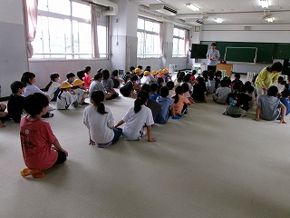 気象警報等が発表された時を想定し、安全に下校するために取るべき行動を、児童も教職員も学ぶ機会でした。