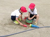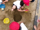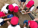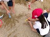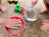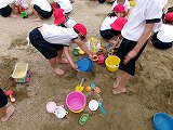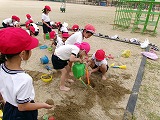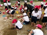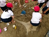 砂場の様子(図画工作の学習の一コマです)を紹介します。
