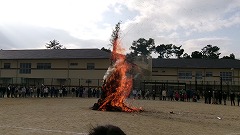 児童会会長が点火し、大住小学校に関わる全ての方々の無病息災・厄除け・学業成就を祈願し、天高く舞い上がる炎を参加いただいた皆様と一緒に見届けました。