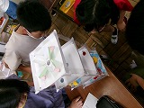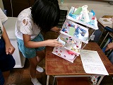 出来上がった作品のおすすめポイントなどを伝えるカードは作品の横に置いてありました。友達の作品の良さを知り、いっしょに楽しんでいました。