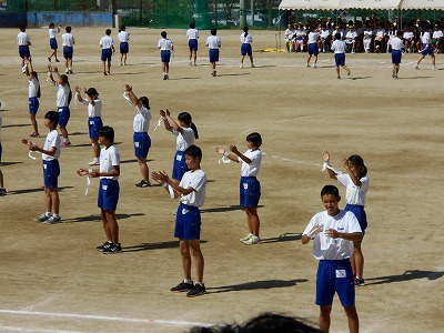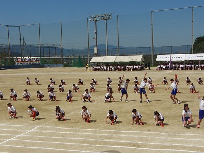 体育大会・・・午後のプログラム1番は、ブロック演技でした。どのブロックもテーマをしっかり表現し、まとまった見ごたえのある素晴らしい演技でした。